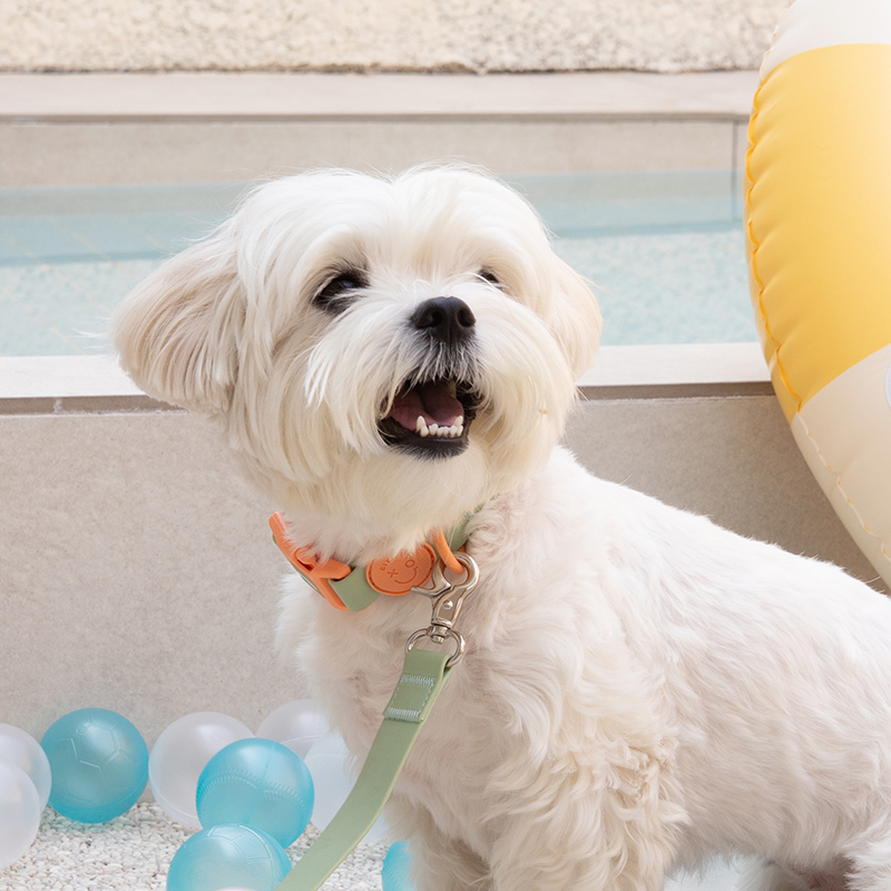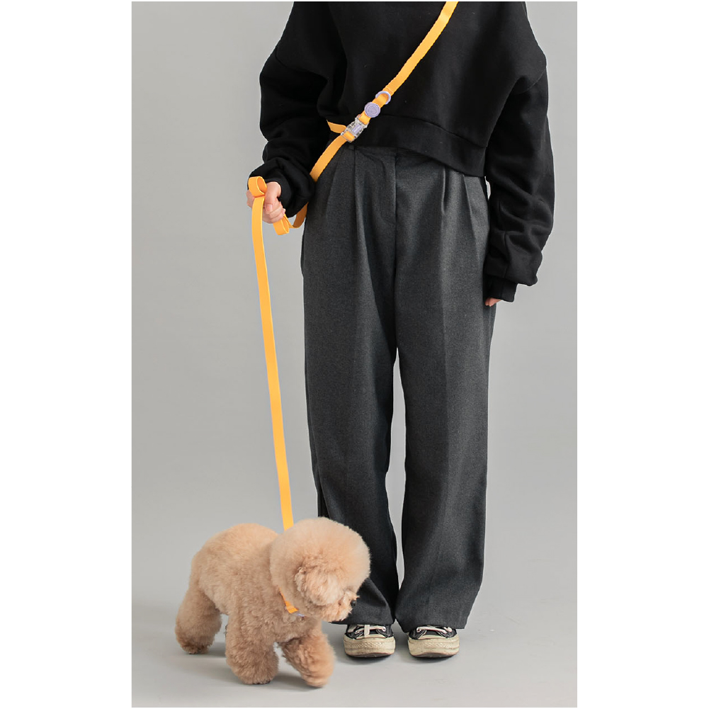 [防水 軽量 高強度]おしゃれなマカロンカラー 首輪+ハンズフリーリード(2.5m)肩掛け・腰巻きOK